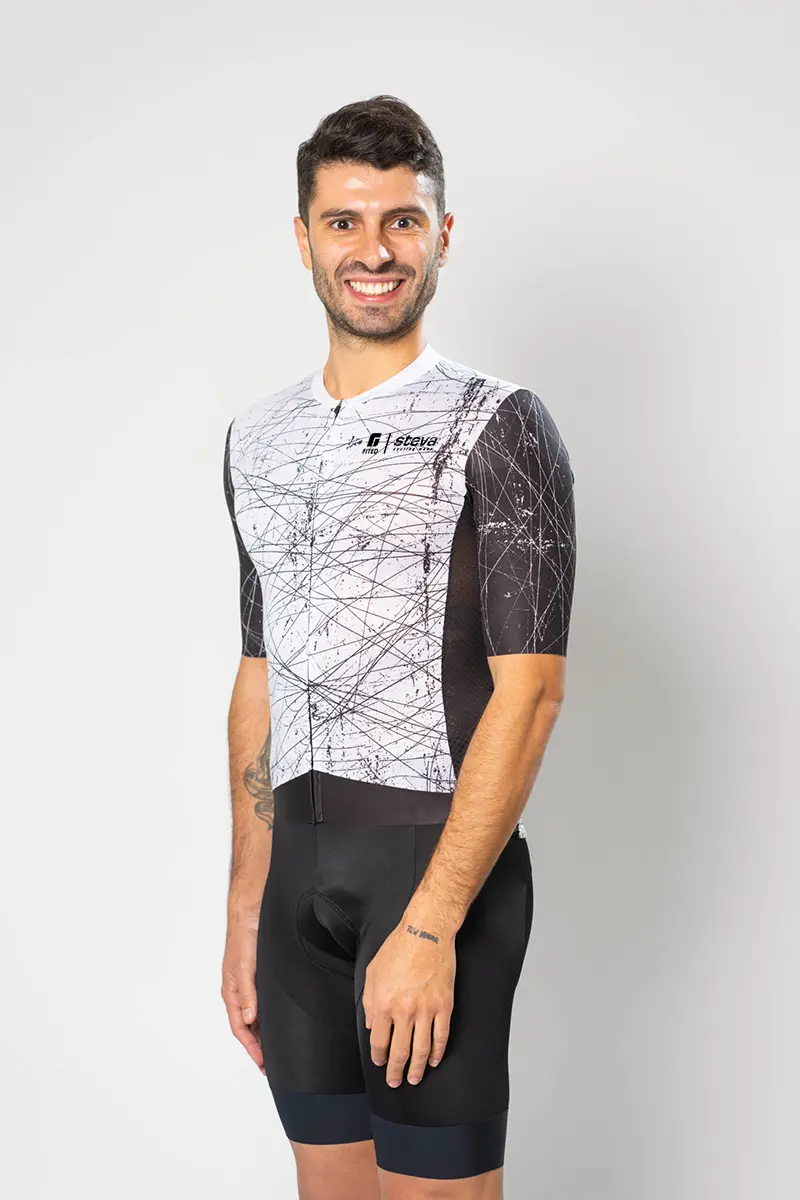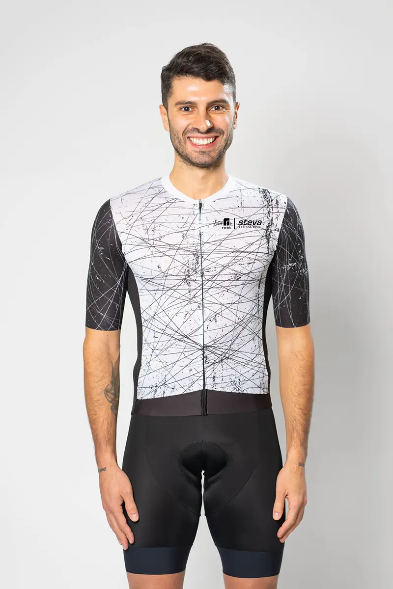 Le maillot de vélo VOLATA PRO est un maillot haut de gamme, proposant de la fibre de carbone, lui offrant des propriétés antistatiques et antibactériennes ! Ce modèle est une évolution, il se distingue par l’introduction de manches coupées à vif et d’un nouveau tissu en mesh sur les côtés, très élastique et respirant. L’association de six tissus différents améliore son confort et sa technicité, faisant de ce maillot l’allié idéal pour affronter chaque sortie sans stress. Il est conçu artisanalement en Italie et uniquement avec des tissus Italiens. La technicité de la matière permet au maillot VOLATA PRO d’être léger, respirant et confortable.